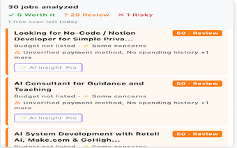 HireIQ, Upwork ve Fiverr gibi platformlardaki iş ilanlarını analiz ederek, serbest çalışanların kaliteli fırsatları hızla bulmalarını sağlar. Bu tarayıcı eklentisi, her iş ilanını 0-100 arası bir puanlama sistemi ile değerlendirir ve potansiyel dolandırıcılıkları işaretler. Kullanıcılar, iş ilanlarını 'Değerli', 'Gözden Geçir' veya 'Riskli' olarak kategorize edebilirler. Ayrıca, akıllı anahtar kelime eşleştirme ile yeteneklerine uygun işleri bulmalarına yardımcı olur. Kullanıcılar, iş ilanlarını kaydedebilir ve başvuru süreçlerini takip edebilirler.